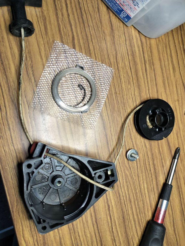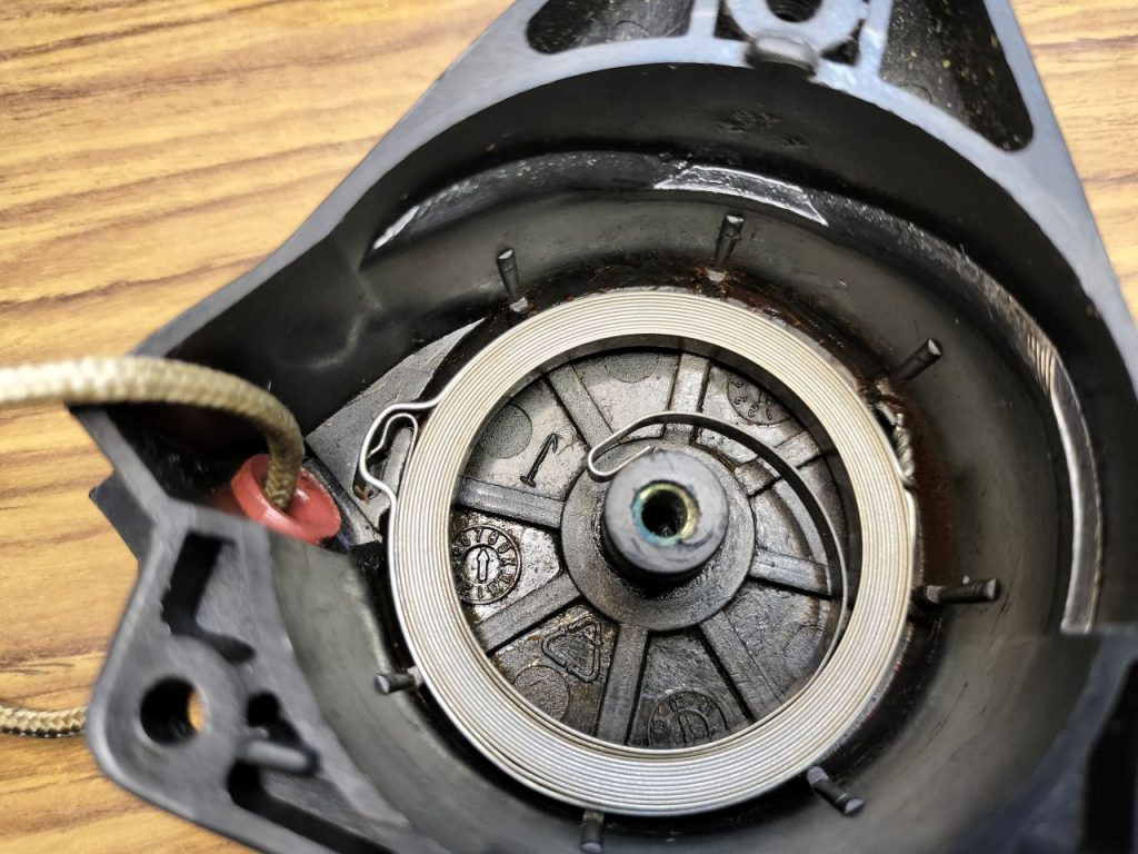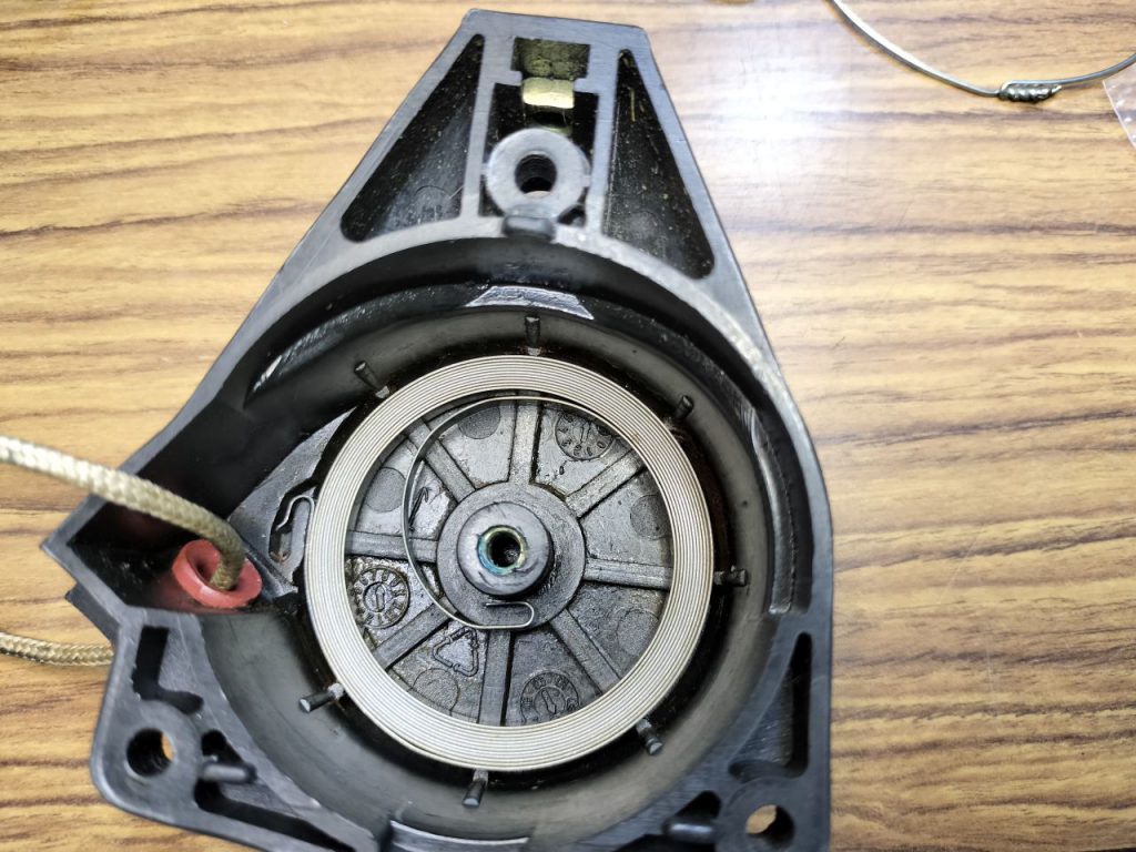 実際に壊れていたのは、プラスチックのスプールなのですが、それを外すとスプリングが外れてたいへんな目にあいます。